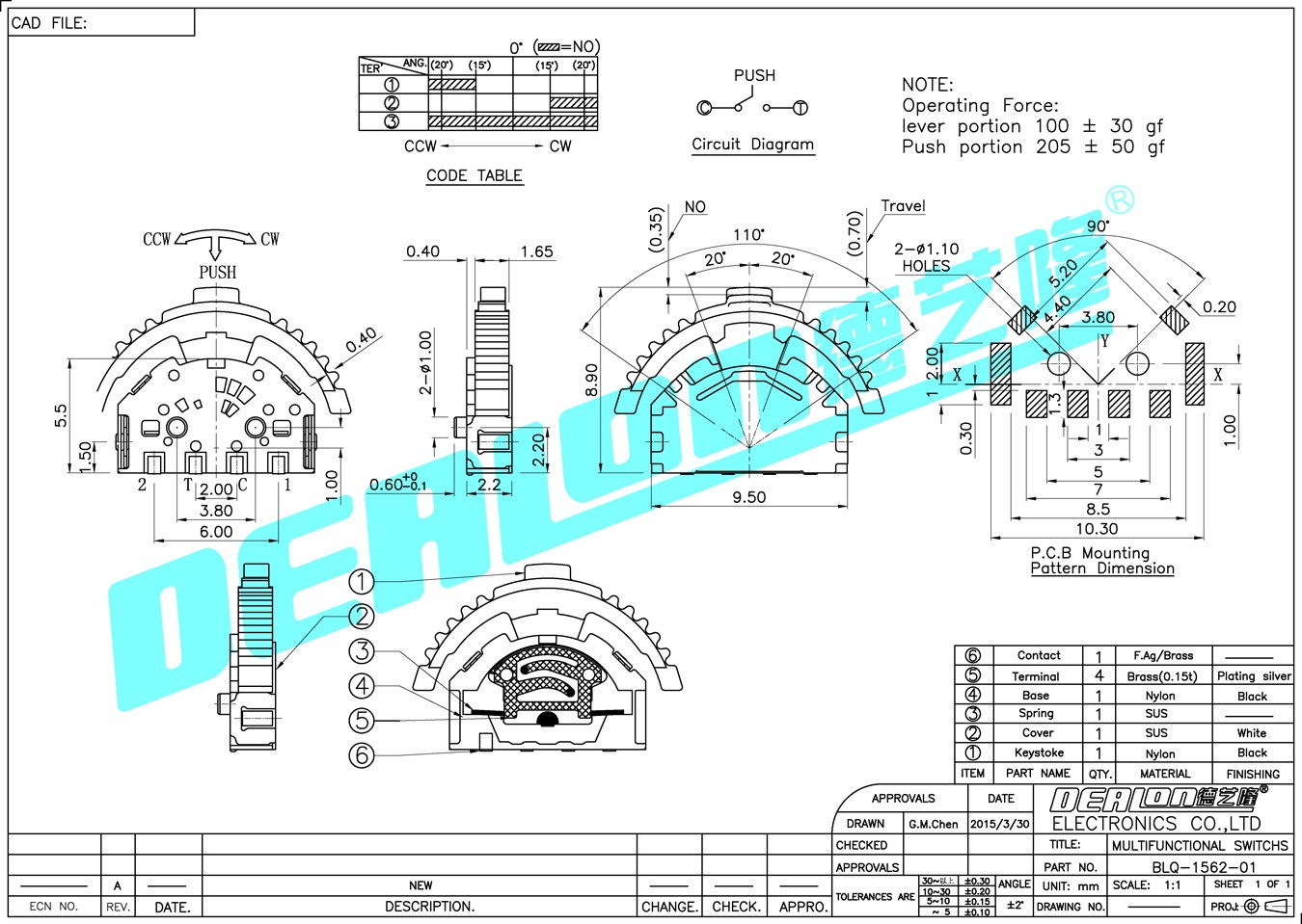 4-direction-20°-0°+20° Center push0.7mm±0.1mm