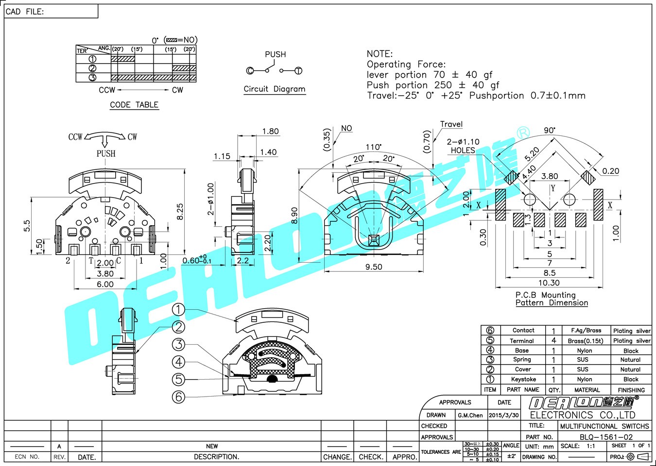 4-direction-20°-0°+20° Center push0.7mm±0.1mm