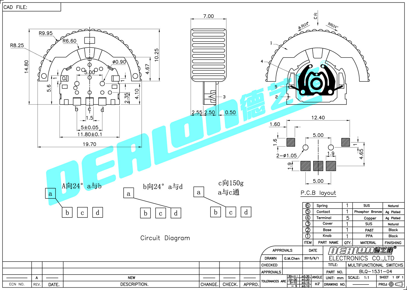 4-direction-20°-0°+20° Center push0.7mm±0.1mm