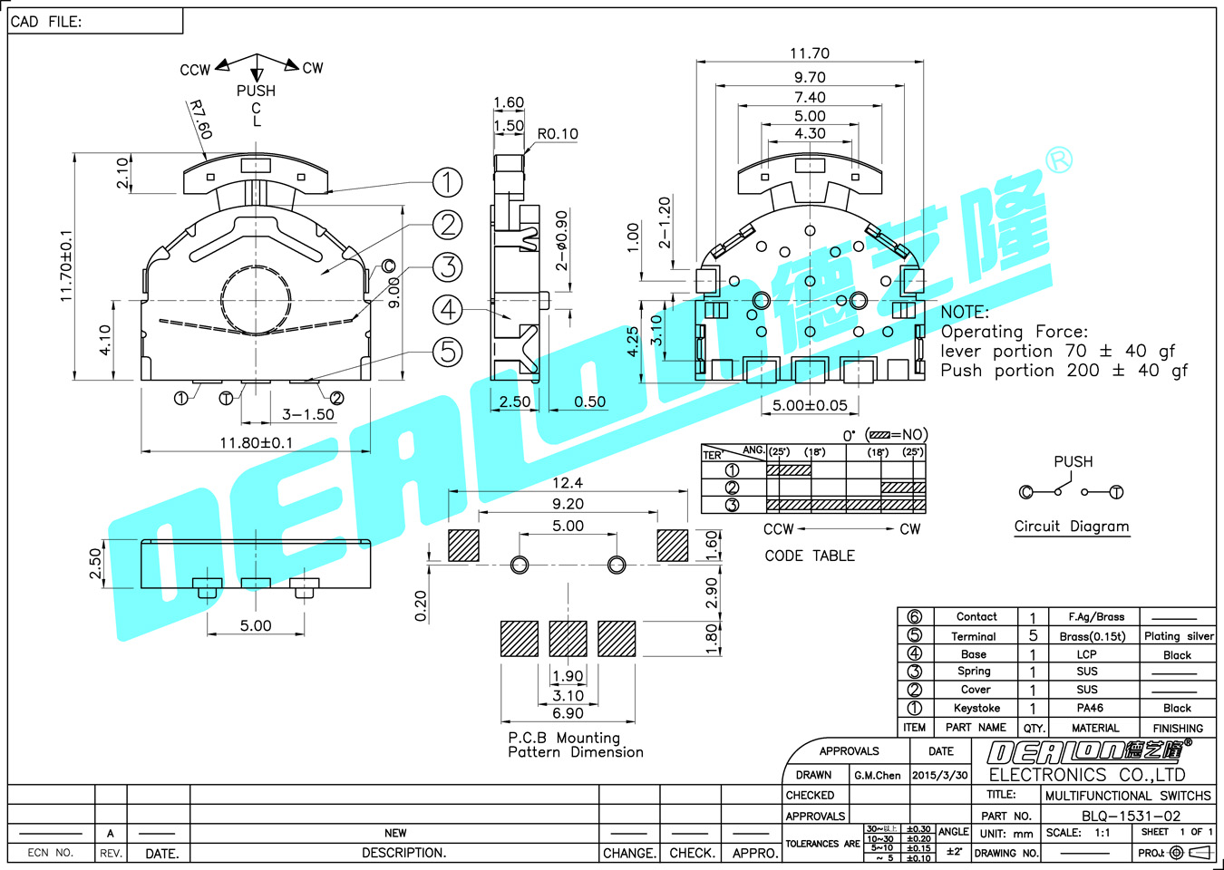 4-direction-20°-0°+20° Center push0.7mm±0.1mm