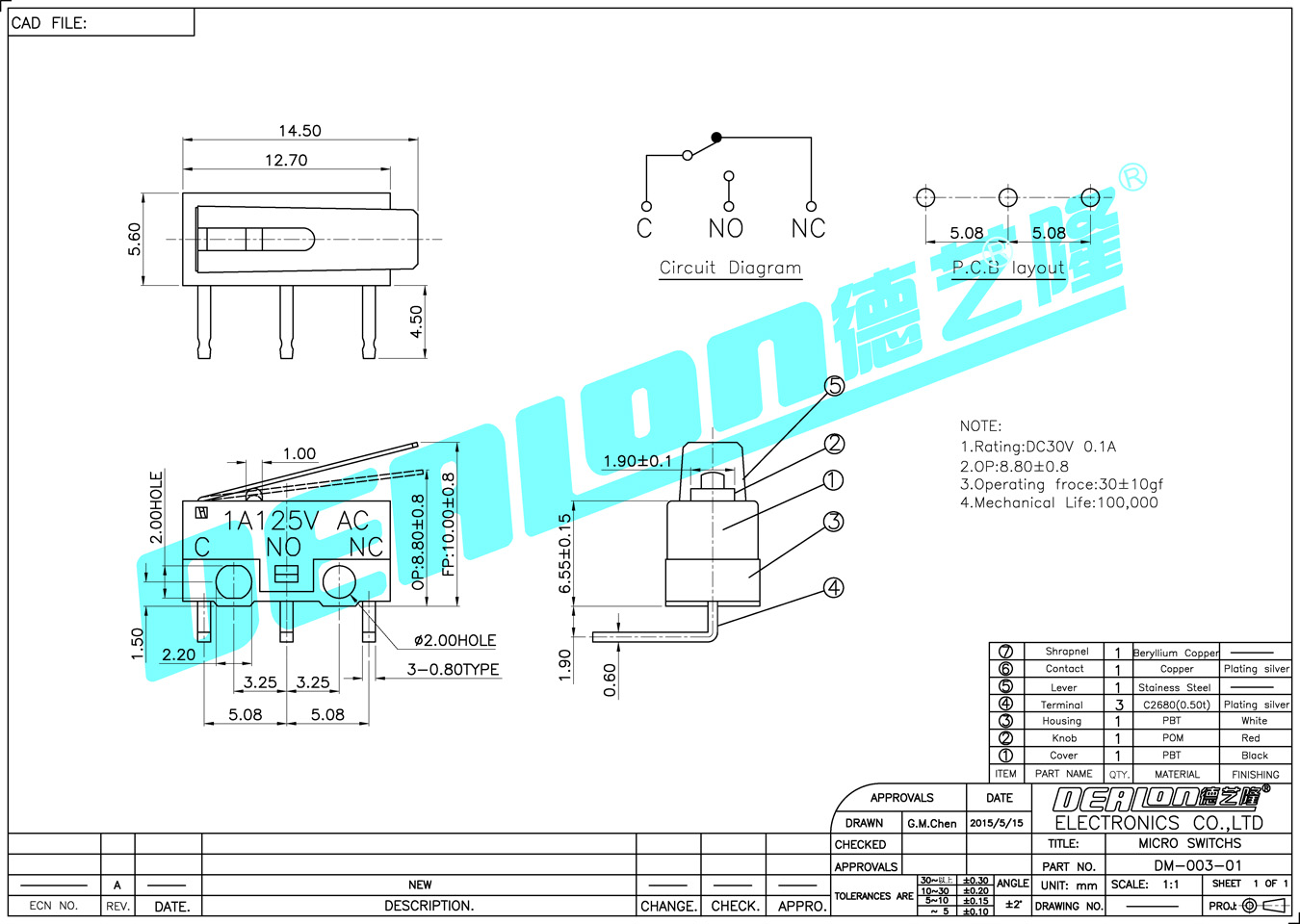 微動開關(guān) DM-003-01